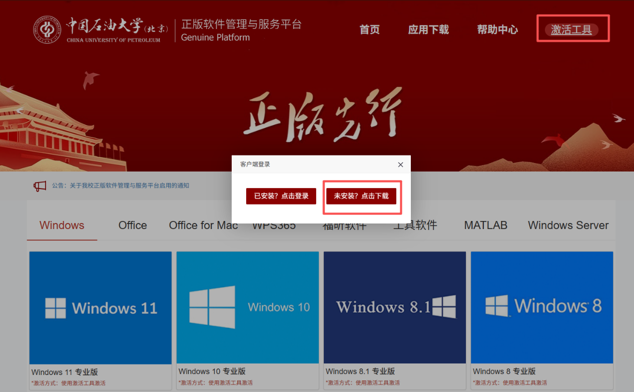 (1)點(diǎn)擊激活工具-未安裝,點(diǎn)擊下載。