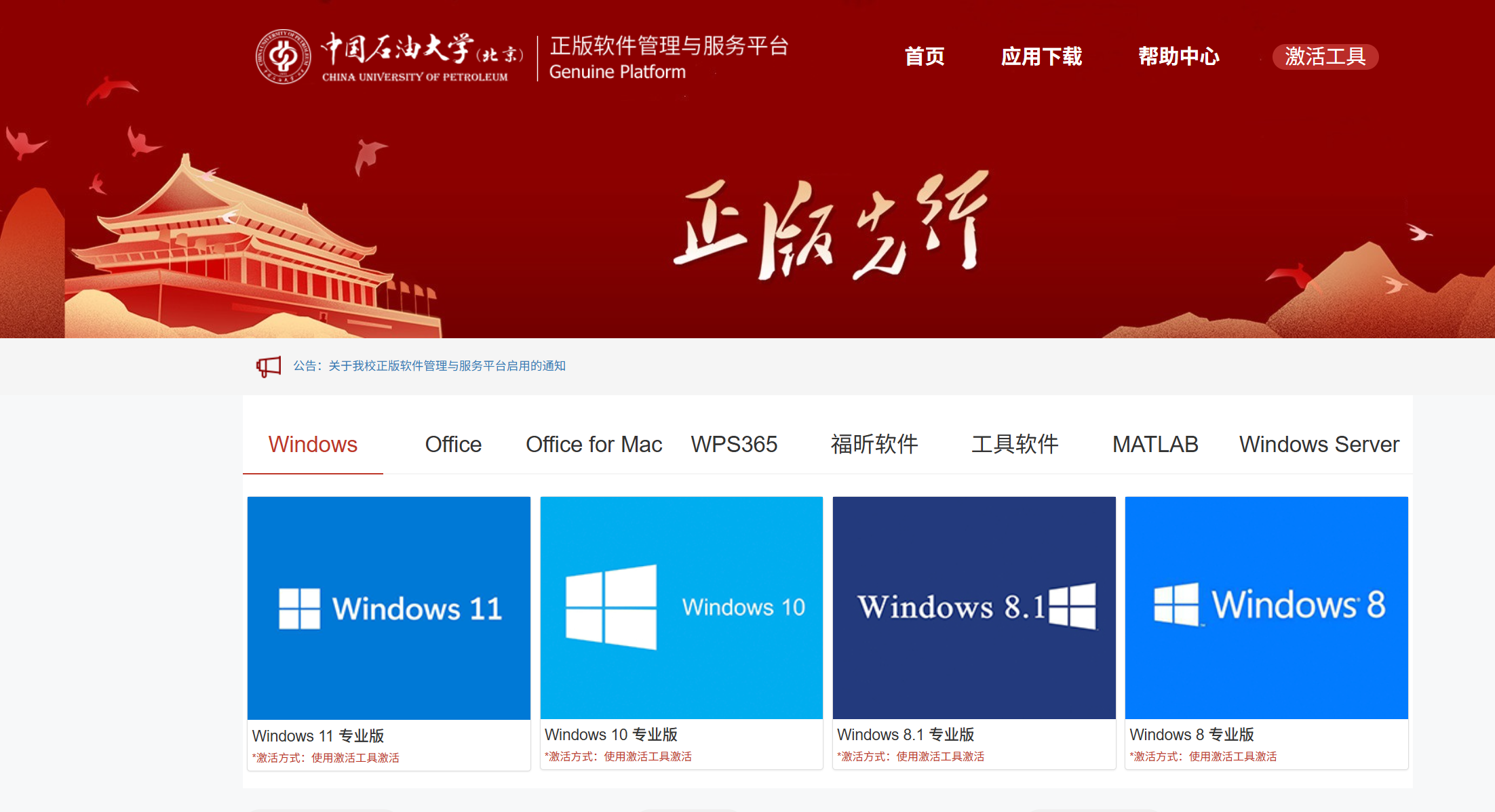1、 在瀏覽器輸入正版化平臺網(wǎng)址:https://software.cup.edu.cn/。