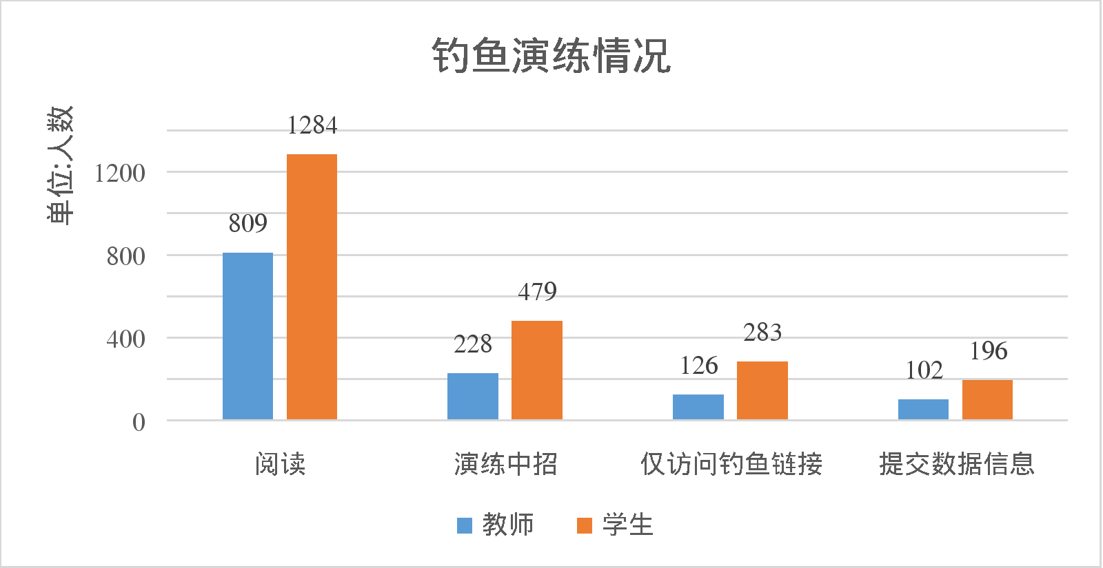 本次釣魚演練投放樣本覆蓋全校教職工和學生,發送共計26424封釣魚郵件(教師:2516,學生:23908),截止到2024年5月20日,一共有707位師生中招,演練情況統計如下: