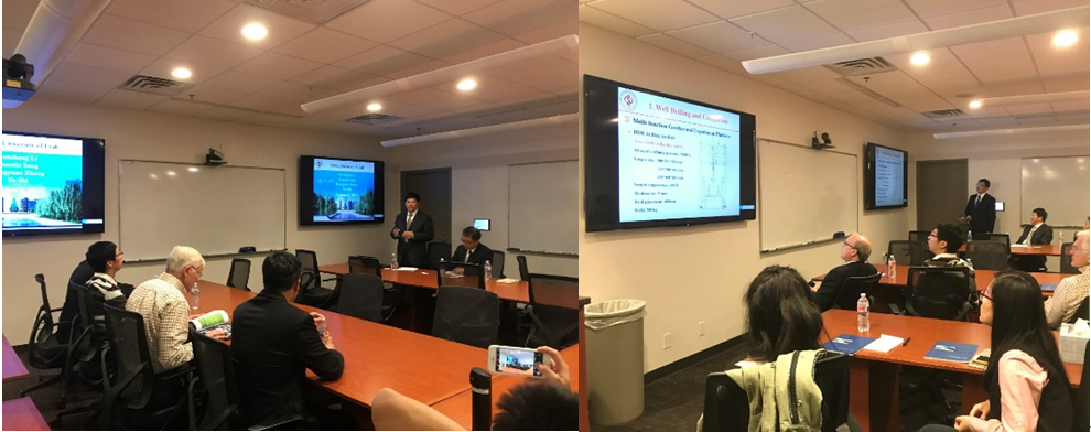 6日,李根生院士一行受邀訪問了美國猶他大學,分別與猶他大學副校長Prof. Andrew S. Weyrich、工程學院院長Prof. Richard B. Brown、能源與地質研究院院長Prof. Raymond A. Levey、化學工程系主任Prof. Milind D. Deo等進行了深入交流,充分了解了猶他大學的辦學情況和科研工作,李根生院士詳細介紹了我校的院系組成、師資力量、國際合作及科學研究的相關情況,宋先知副教授受邀做了題為:“Research and Application of Water Jet Technology in Drilling and Completion”和“Research Progress in Geothermal Well Drilling, Completion and Production”的學術報告。訪問期間,雙方就人才培養、科技合作、學術交流與聯合實驗室等進行了探討并達成了合作意向。最后,李根生院士探望了在猶他大學訪問學習的石大師生,了解了他們的學習、科研和生活情況,鼓勵大家努力工作,取得豐碩的科研成果。