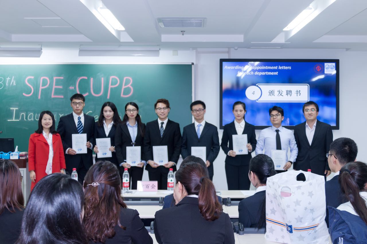 韓國慶對新一屆SPE成員提出期望,希望新一屆SPE成員更加富有活力,多參與國際交流會議,提高對外交流水平。方百會祝賀第十三屆SPE執委會的成立,希望新一屆SPE成員能夠繼承SPE精神,繼續服務廣大石油學子。SPE第十三屆主席劉昱發表就職演說,講述了SPE過去幾年取得的輝煌成果以及SPE在學生成長過程中的積極作用,表達了對社團未來發展的信心與期待。嘉賓、領導為新一屆主席團成員及各部門部長頒發聘書。