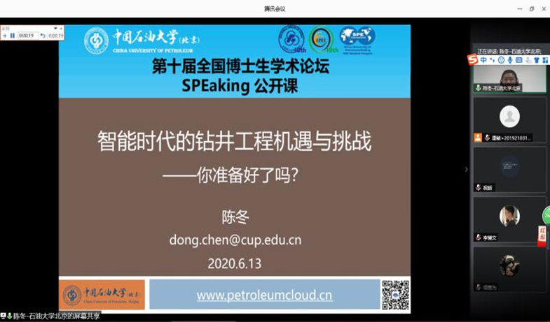 為貫徹“三全育人”的教育理念,在特殊時期促進學生了解石油知識和石油行業發展進程,將石油行業的發展成就轉化為育人素材,引領“學石油,愛石油”的風尚。6月13日上午,石油工程學院通過騰訊會議平臺舉辦了SPEaking公開課主題講座。中國石油大學(北京)石油工程學院副教授陳冬擔任主講嘉賓,并做了題為“智能時代的鉆井工程機遇與挑戰”的報告,活動共吸引200余名師生參加。