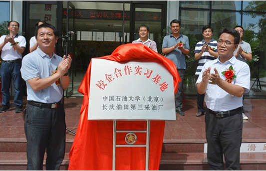 7月7日,石油工程學(xué)院和長慶油田采油三廠聯(lián)合建立的校企合作實(shí)習(xí)基地揭牌儀式在銀川舉行,石油工程學(xué)院黨委書記寧正福和長慶油田采油三廠總地質(zhì)師馬永寧為實(shí)習(xí)基地揭牌。