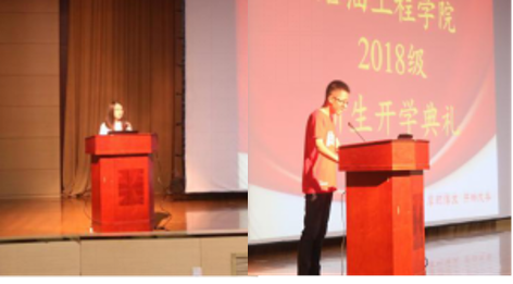 典禮在嘹亮的國歌聲中開幕,隨后,油氣田開發(fā)工程2017級碩士研究生黃寧曼代表在校生發(fā)言。她結(jié)合自身學(xué)習(xí)經(jīng)歷,建議新生們把握好手中的方向盤,抓住一切未來的可能,敢于對未知的事物進(jìn)行探索。接下來,石油工程2018級本科新生周成志作為新生代表發(fā)言,他表達(dá)了對學(xué)院的感謝和敬意,同時(shí)對自己提出四點(diǎn)要求,時(shí)刻約束自己。