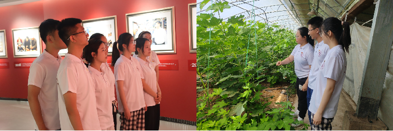 實踐團深入閩寧鎮,通過走訪調研,實地參觀等方式,探尋閩寧鎮脫貧致富的“金鑰匙”。走進閩寧新貌展示中心和趙鴻文化大院,學習中國東西部扶貧協作成功案例,感受閩寧紅色文化旅游產業的鄉村振興新風向。在非遺工坊,與漆扇非遺傳承人和麻編手藝人面對面交流學習非遺手藝,并同步多平臺直播,讓非遺文化“活”起來、“火”起來。實踐團參觀昌盛光伏生態科技園,“棚上光伏發電,棚下別有洞天。”結合當地扶貧工作設立的“光伏農業”模式實現了現代農業新型業態,打造綠色可持續發展格局。