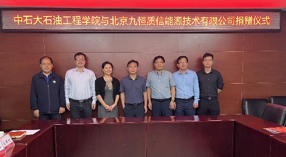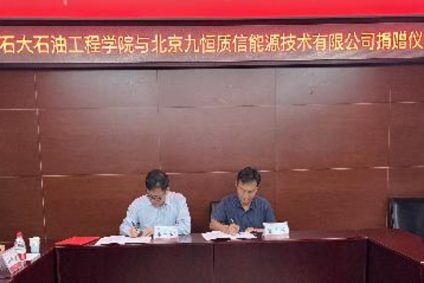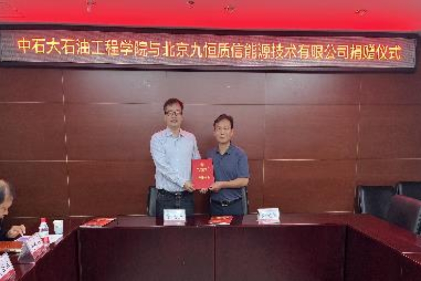 受北京中國石油大學教育基金會委托,宋先知與徐文熙董事長簽署了捐贈協議,并頒發捐贈證書。北京九恒質信公司捐贈30萬元并設立了“徐文熙勵志獎學金”,用于支持學院研究生教育教學工作。