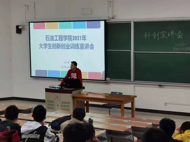 本次活動由三個部分構成。首先,由石油工程學院2021級輔導員王心賀對大學生創新創業訓練計劃背景意義及最新政策作解讀宣講。他提到,大創項目對促進大學生綜合發展和思維發散有著重要作用。此外,王心賀也同樣向大家闡述了全新的創新創業制度,使學生對科創有了更多的了解和熱情。