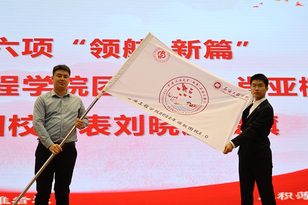 在“領(lǐng)航·啟后”環(huán)節(jié)上,肖亞楠向第四屆領(lǐng)航員代表劉曉旗授領(lǐng)航團校校旗。第三屆領(lǐng)航員代表王連國為第四屆領(lǐng)航員頒發(fā)聘書,傳遞“領(lǐng)航接力棒”,新一屆領(lǐng)航員將帶著學(xué)院的囑托,傳承石工精神,帶領(lǐng)學(xué)員們揚帆起航,再創(chuàng)佳績。第四屆領(lǐng)航員代表羅家麟發(fā)言,他鼓勵同學(xué)們深刻認(rèn)識青年的使命擔(dān)當(dāng),求真務(wù)實、全面發(fā)展,切實踐行鐵人精神,爭做新時代鐵人。