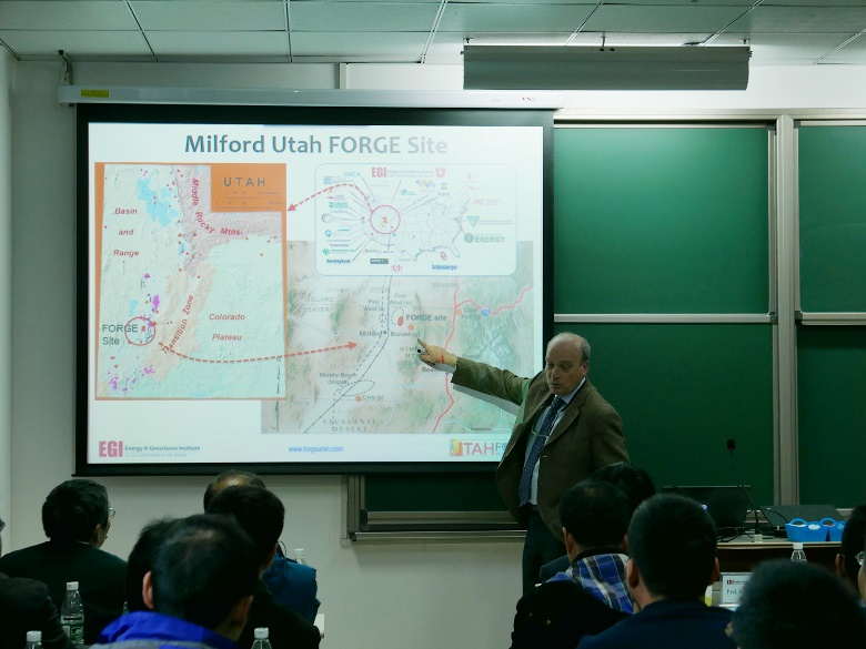 2016年11月27日,高等學(xué)校學(xué)科創(chuàng)新引智計(jì)劃項(xiàng)目“深部地?zé)豳Y源開發(fā)基礎(chǔ)研究”學(xué)術(shù)交流會(huì)在中國(guó)石油大學(xué)(北京)舉行。此次學(xué)術(shù)交流會(huì)由中國(guó)石油大學(xué)(北京)、油氣資源與探測(cè)國(guó)家重點(diǎn)實(shí)驗(yàn)室、非常規(guī)油氣協(xié)同創(chuàng)新中心共同主辦。學(xué)術(shù)交流會(huì)由中國(guó)工程院院士、石油工程學(xué)院李根生教授主持。美國(guó)猶他大學(xué)能源與地質(zhì)研究所高級(jí)科學(xué)家John教授、中國(guó)科學(xué)院地質(zhì)與地球物理研究所地?zé)豳Y源研究中心主任龐忠和教授、中國(guó)石油大學(xué)(北京)油氣井工程系主任黃中偉教授作了精彩的報(bào)告。美國(guó)猶他大學(xué)、中國(guó)科學(xué)院、中石化工程院、中國(guó)石油大學(xué)(北京)、西南石油大學(xué)等5家單位的25名研究人員出席會(huì)議,并吸引了100多位老師和學(xué)生前來參會(huì)。