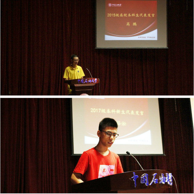 典禮在雄壯的國歌中拉開帷幕,并由本2017級石油工程專業輔導員付強主持。在雄壯的國歌聲過后,2015級在校本科生代表高鵬發言,祝愿全體新生能夠擁有一個充實、有意義的大學生活。接下來,2017級新生代表王鐸淞發言,分享了他對大學生活的美好期待和未來建設祖國石油石化事業的決心。