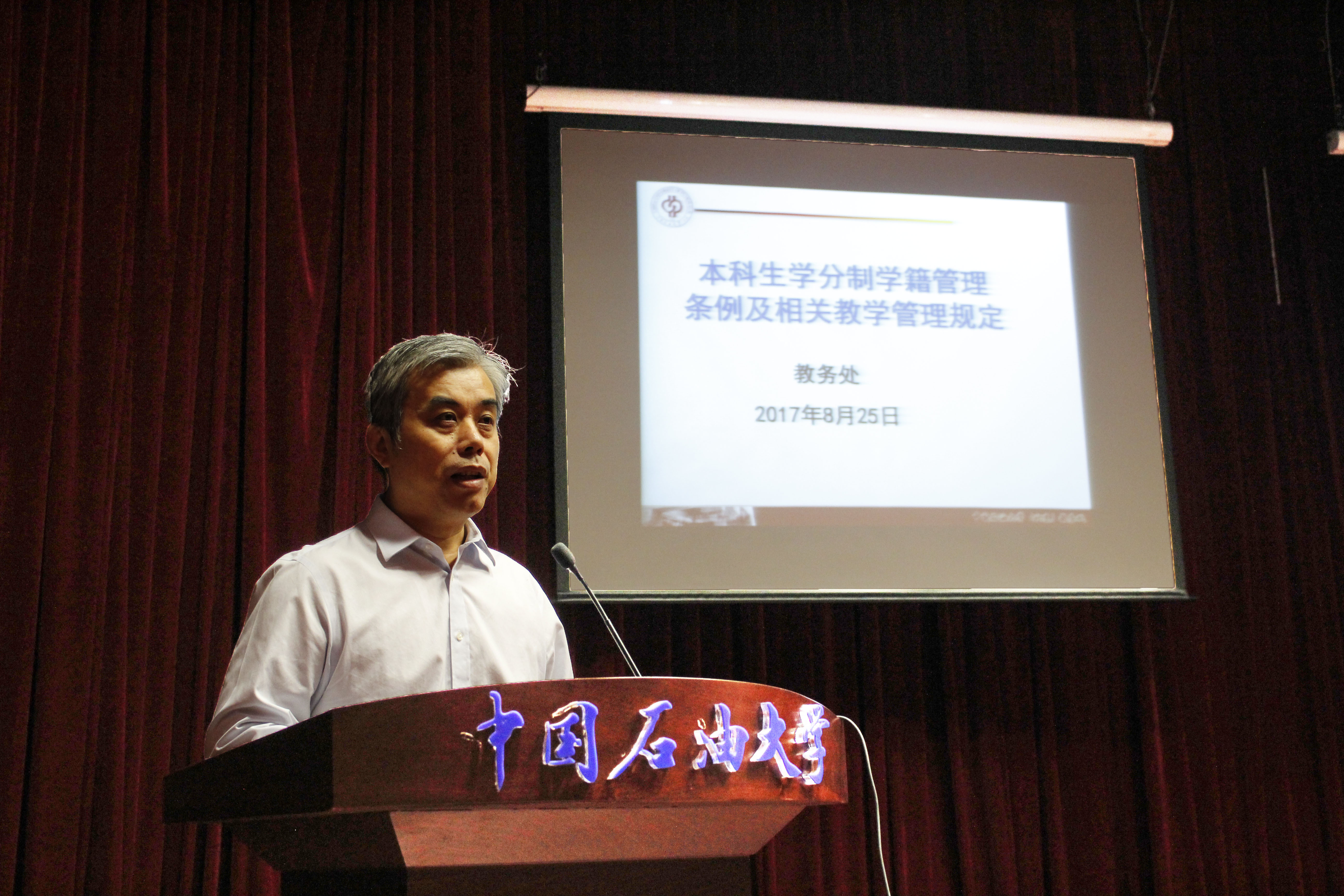 隨后,張廣清登臺致辭。他就我院師資力量、教學能力等方面進行了細致地講解。同時,他也針對油價低迷的現狀做出詳細地分析,他表示,石油行業的寒冬是挑戰,也是機遇,希望同學們能繼續保持行業自信,越走越遠。