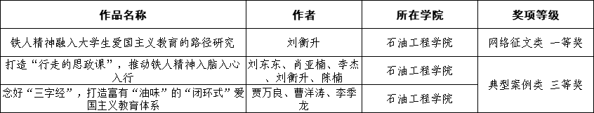 近日,“守正創(chuàng)新強(qiáng)思想,砥礪奮進(jìn)譜新篇”主題網(wǎng)絡(luò)作品征集展示活動(dòng)結(jié)果公布,石油工程學(xué)院在網(wǎng)絡(luò)征文類和典型案例類兩個(gè)項(xiàng)目作品征集中獲一等獎(jiǎng)作品1項(xiàng),三等獎(jiǎng)作品2項(xiàng)。