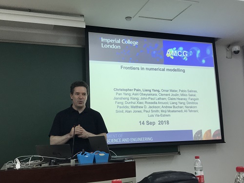 2018年9月14日,由中國石油大學(北京)石油工程學院、油氣資源與探測國家重點實驗室主辦的“蟒山講壇—石工分講壇”第七期在第四教學樓206教室成功舉辦。英國帝國理工學院地球科學與工程學院教授、應用建模和計算課題組(AMCG)組長、數據同化實驗室主任Christopher Pain應邀作為本期講壇的主講嘉賓,作了題為“Frontiers in Modelling of Oil and Gas and Geothermal and Other Related Areas”的學術講座。講座由石油工程學院黃中偉教授主持,相關研究方向的教師和學生60余人參與交流。
