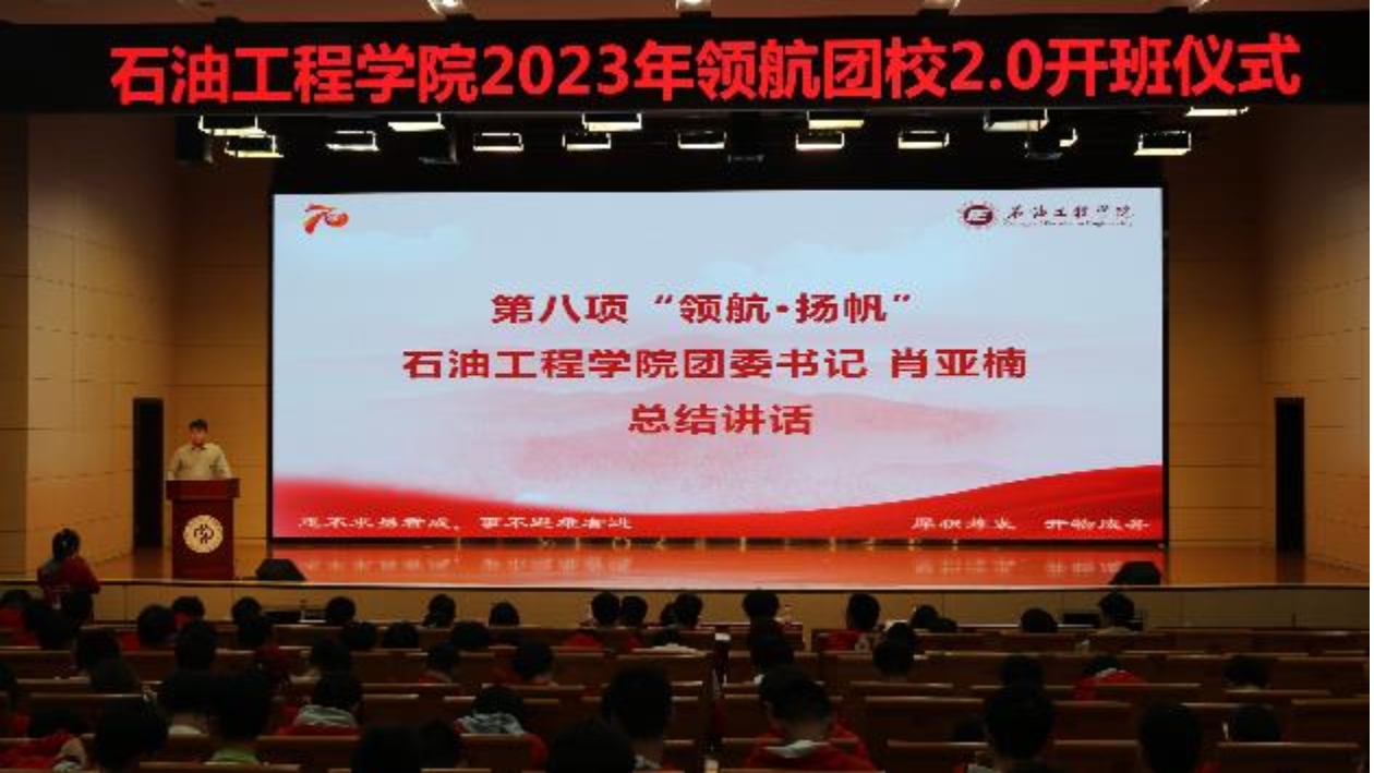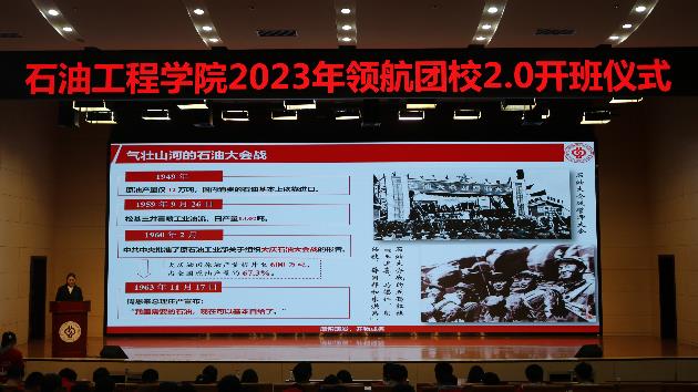 11月4日下午,石油工程學院2023年領航團校2.0開班典禮在中油大廈三層報告廳成功舉辦。校團委副書記韓瑾、石油工程學院黨委副書記劉東東、石油工程學院團委書記肖亞楠和相關輔導員出席活動。領航團校2.0第四屆和第五屆領航員、學院第五期鐵人精神訓練營社會實踐團隊優秀代表、學生社團骨干、全體大一新生參與活動。