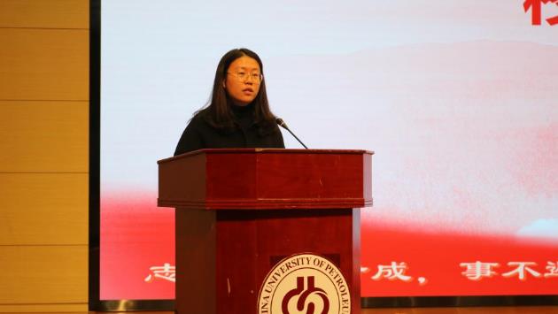 鐵人先鋒宣講團成員李博寧以“學鐵人精神·尋石大榮光”為主題開展第一課培訓,她講述了新中國石油工業的光輝發展歷程,通過講述王進喜、王啟民、李新民三代鐵人的光榮事跡,闡釋鐵人精神的深刻內涵。講述了劉書杰、張淑萍兩位先進校友的優秀事跡,激勵同學們秉持“我為祖國獻石油”的理想信念,不斷進取,為祖國能源事業貢獻青春力量。
