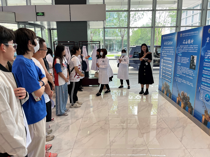 最后,學院師生在工程師的帶領下走進實驗室,參觀各式各樣的實驗儀器以及自主研制的化學藥劑,觀看了地下原油流動和驅替的實驗過程,近距離接觸海洋石油科技,堅定了學生們向海圖強、能源報國的理想信念。