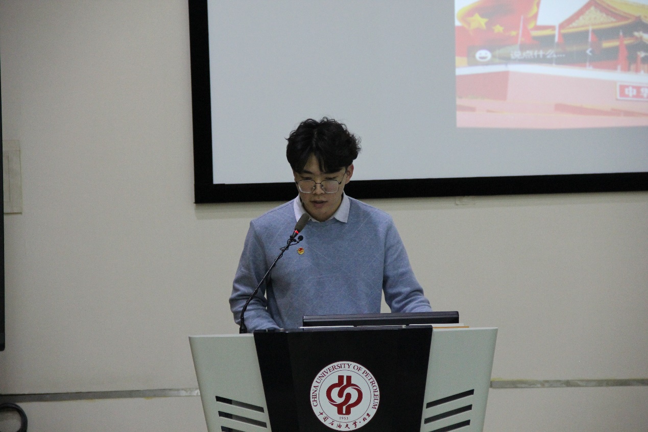 楊國峰給大家帶來了一場主題為“新時代青年的責任擔當”的宣講。他從世界局勢、中國崛起之路和新時代中國青年的擔當三個方面講述了馬克思主義在中國的傳播對中國的發展、社會的發展的重要意義。他指出,以愛國主義精神為核心的大慶精神、石油精神是老一輩石油人留給新時代石油人的寶貴財富,是激勵石油學子奮進的不竭動力。他鼓勵青年學生們,努力提高綜合素質,懷揣“能源報國”之心,走好新時代長征路,做可堪大用、能擔大任的時代新人。
