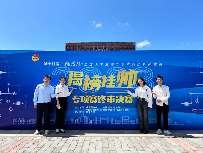 在最終的“擂臺(tái)賽”環(huán)節(jié),學(xué)校副校長(zhǎng)張廣清親自帶隊(duì),為學(xué)生加油打氣。學(xué)校團(tuán)學(xué)干部協(xié)同育人、共同努力,為參賽隊(duì)員培訓(xùn)答辯經(jīng)驗(yàn)、打磨答辯細(xì)節(jié)、排練問(wèn)詢(xún)流程,提升展示環(huán)節(jié)的感染力。學(xué)院學(xué)工隊(duì)伍全流程跟進(jìn)比賽進(jìn)程,從前期材料準(zhǔn)備到后期組織參加決賽,從聯(lián)系多方指導(dǎo)學(xué)生答辯到臨上場(chǎng)前一天組織學(xué)生精準(zhǔn)“卡點(diǎn)”演練,做到了全流程精準(zhǔn)把控。在大家的共同努力下,隊(duì)長(zhǎng)劉辰在“打擂”舞臺(tái)完美展示參賽作品,力克南京航空航天大學(xué)、中國(guó)石油大學(xué)(華東)、中國(guó)地質(zhì)大學(xué)(武漢)和常州大學(xué)參賽團(tuán)隊(duì),最終“奪擂”成功!