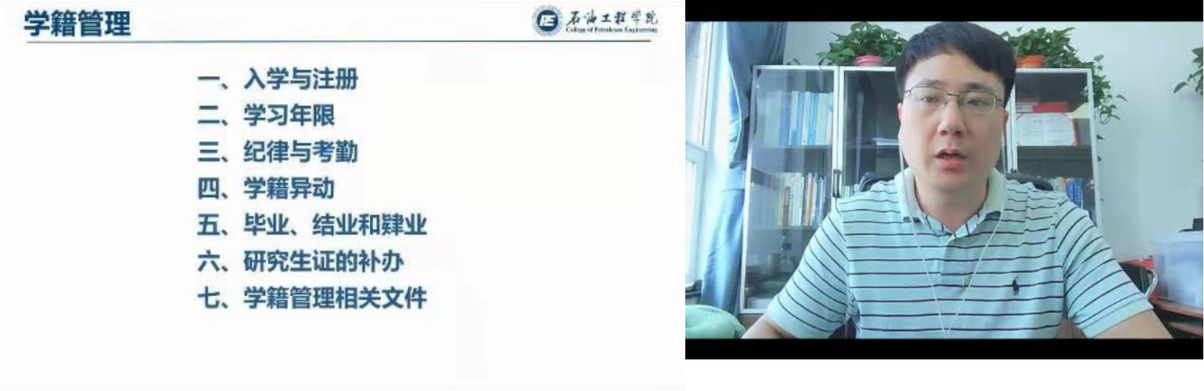 8月31日下午3點(diǎn),為幫助2021級(jí)研究生更好實(shí)現(xiàn)身份轉(zhuǎn)變、適應(yīng)校園生活,本著疫情期間盡量避免組織大型集體聚集性活動(dòng)的原則,石油工程學(xué)院2021級(jí)研究生新生入學(xué)教育暨研究生手冊(cè)宣講依托網(wǎng)絡(luò)平臺(tái)成功舉行。石油工程學(xué)院副院長(zhǎng)劉偉、全英文國(guó)際碩士班班主任楊睿月、團(tuán)委書記劉東東、2021級(jí)研究生輔導(dǎo)員曹洋濤出席會(huì)議。本次大會(huì)由石油工程學(xué)院研究生會(huì)主席王蓓東主持。