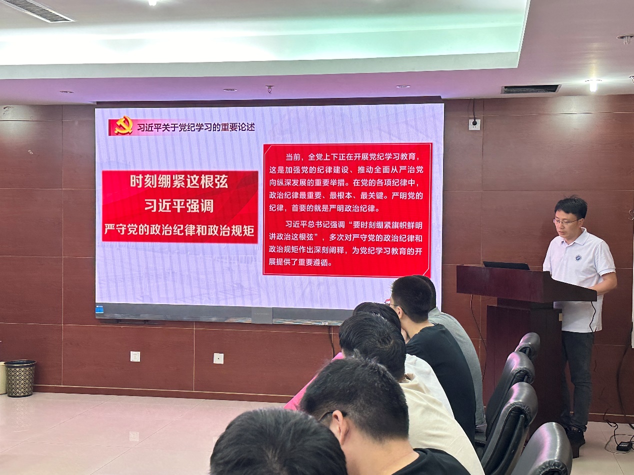 劉偉以《如何做新時代合格黨員》為題,介紹了本次在全黨開展黨紀學習教育的背景,闡述了本次學習的意義與目的,強調黨的紀律具有不可替代的重要作用;通過介紹《條例》的主要內容,加深了支部黨員對加強黨的紀律建設的重大意義的認識;以電視專題片《持續發力,縱深推進》為切入點,詳細講述了身邊實際警示案例與切身體會,強調心中必須有一桿秤,知道什么是紀律、什么能做、什么不能做;對于將要步入工作崗位的學生黨員更好對照《條例》規范自己的行為,系好人生的第一粒扣子。