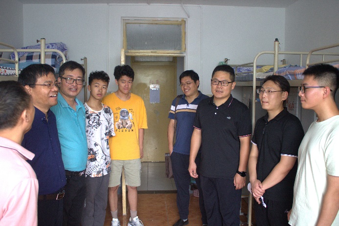 在迎新點,幾位院領導了解了報到情況,高度贊揚了工作人員飽滿的工作熱情和良好的工作狀態,對積極投身迎新工作的志愿者表示慰問。隨后,幾位學院領導走訪了學院本科生和研究生的新生宿舍,并與家長們和同學們進行交流。
