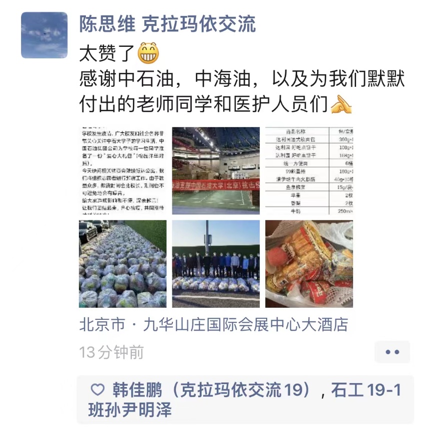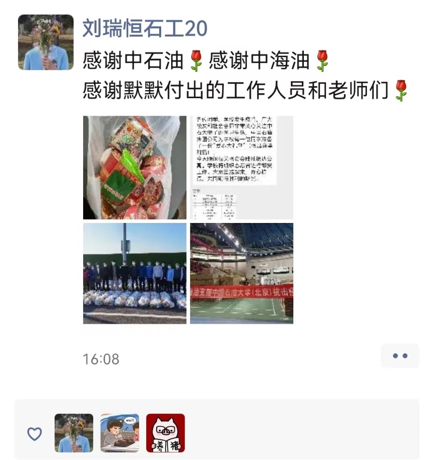 針對中油大廈辦公室臨時管控導致師生無法正常開展教學、上課、就業、科研等問題,油氣田開發系滯留中油大廈優秀學科博士后梁星原博士帶領付玥、沈斌、李榮濤3名滯留學生組成青年突擊隊,耗時10多個小時,幫助中油大廈北樓40間辦公室的192名同學和老師師生安裝遠程軟件,實現遠程鏈接,為學生求職材料準備、考試資料整理、科研工作開展提供了有力支持。