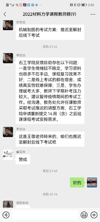 學院全體教師積極投身線上授課,開啟課程回看功能,滿足學生多樣化上課需求,授課之前進行課程思政,引導學生堅定信心、理性樂觀、共抗疫情。為了緩考學生備考壓力,優化考試方案,部分課程申請課程緩考,增開線上答疑,穩定學生緊張情緒,使學生能夠兼顧當前疫情防控和學業考試。