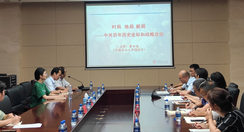 為加強兩支部黨員同志對黨的二十大精神的學習,提升黨員同志政治理論水平和黨性修養,特地邀請了中國石油大學(北京)馬克思主義學院曹培強老師給兩支部同志講黨課。曹老師從“時局格局新局”三個不同角度分析了中共百年歷史坐標和戰略定位。他強調了領導人的重要性和唯一執政黨的重要性,中國共產黨建黨的信念即是“為人民謀幸福,為民族為復興”,黨員同志更應該秉持著“為人民服務”的宗旨在工作中埋頭苦干、擔當作為、不斷推進社會主義現代化建設。