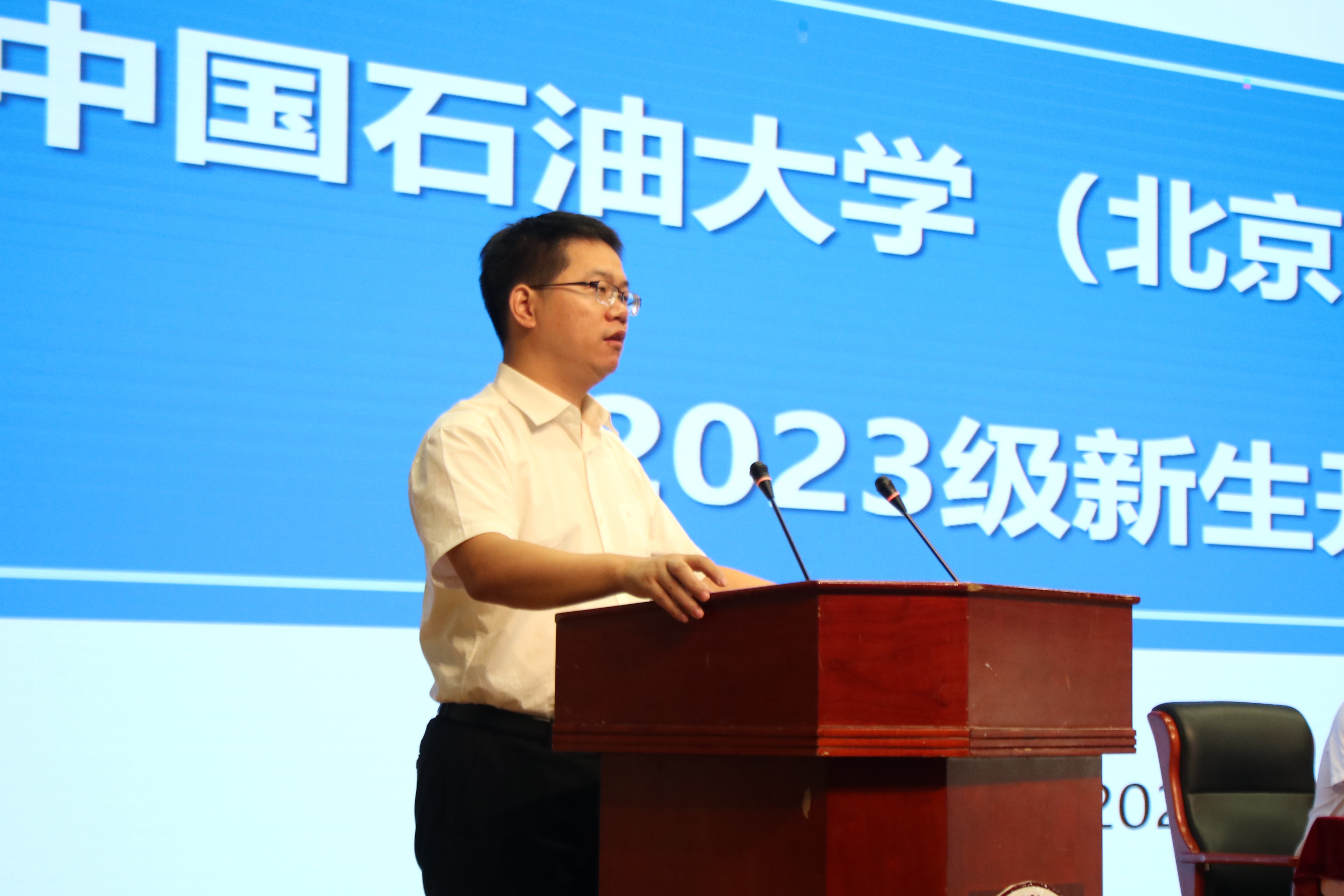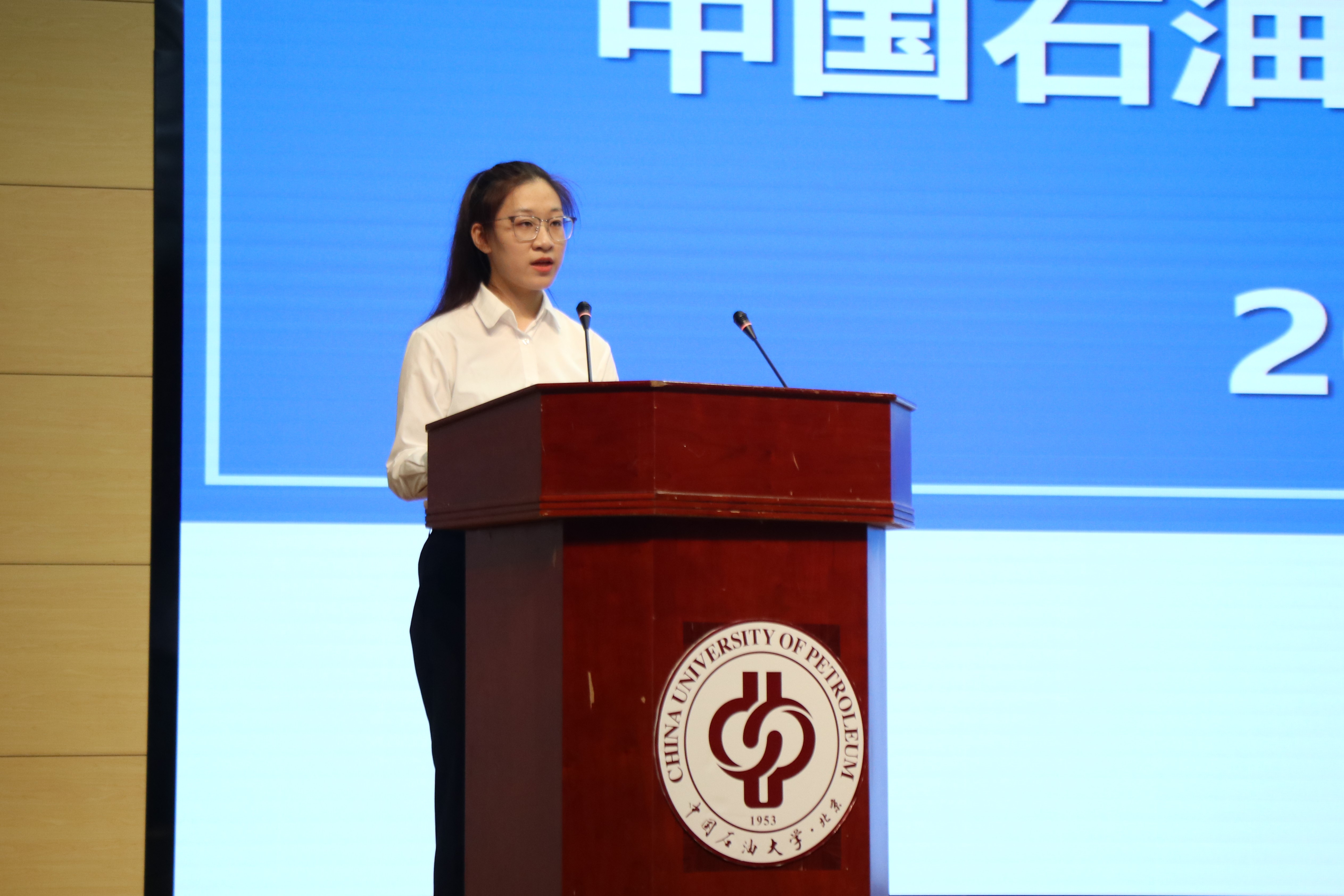 2023級本科新生楊京京作為新生代表發(fā)言,她從自己與中石大的不解之緣講起,表示自己作為校園里的“最年輕一輩”,將接過時代的接力棒,用自己的實際行動踐行傳承鐵人精神,在中石大實現(xiàn)自己的能源報國夢。