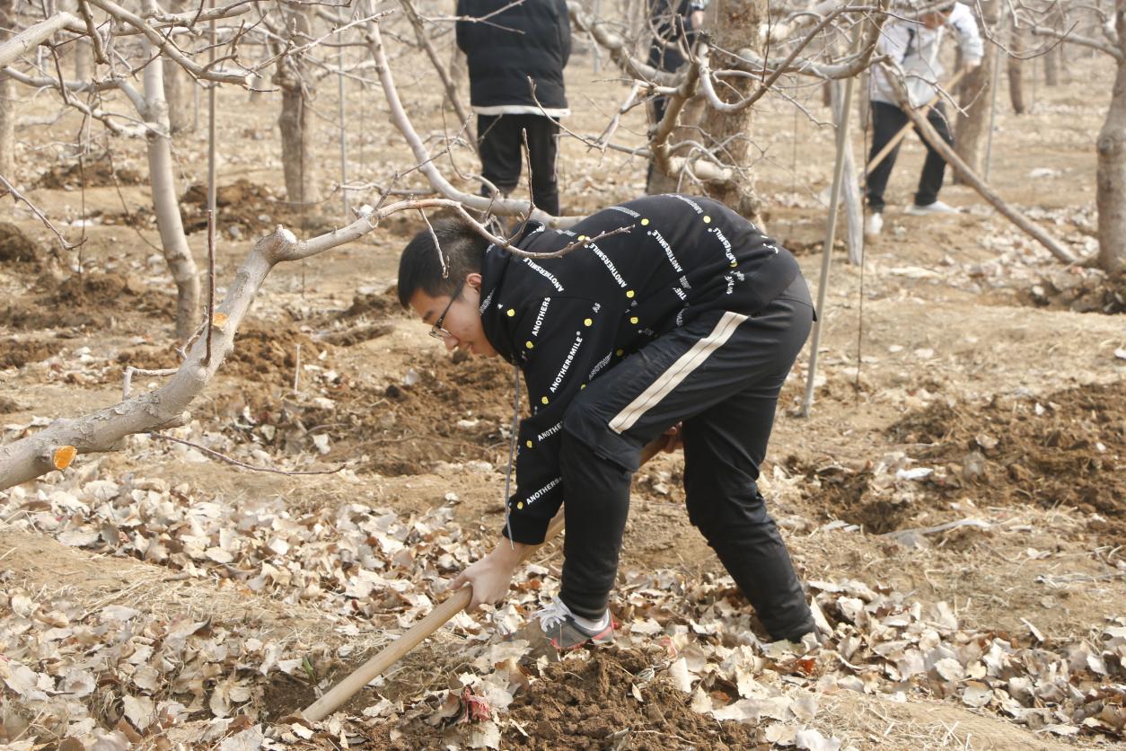隨后老師和同學(xué)們扛著鐵鍬走進(jìn)進(jìn)田間地頭,開展“學(xué)雷鋒精神,揚勞動美德”活動,大家勞動熱情高漲,干的熱火朝天,一起揮動著鐵鍬為果園松土。
