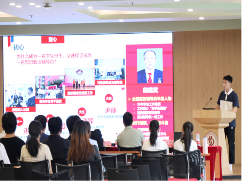 學院2024級新生輔導員劉瑞恒以“塑心、繪象、育行、造境,做大學生成長的引路人、同路人、開路人”為題,介紹了自己從學生骨干一路走來成長為輔導員的心路歷程。2023級碩士研究生王一帆從學生干部工作的計劃性、團結(jié)性、細節(jié)性和原則性等方面作了經(jīng)驗分享。