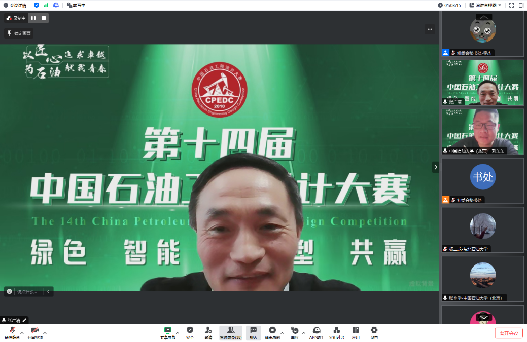 3月10日,2024年中國石油工程設計大賽組委會會議在線召開。大賽組委會秘書處秘書長、中國石油大學(北京)副校長張廣清,大賽主辦單位、各委員單位相關部門負責人等30余人參加會議。
