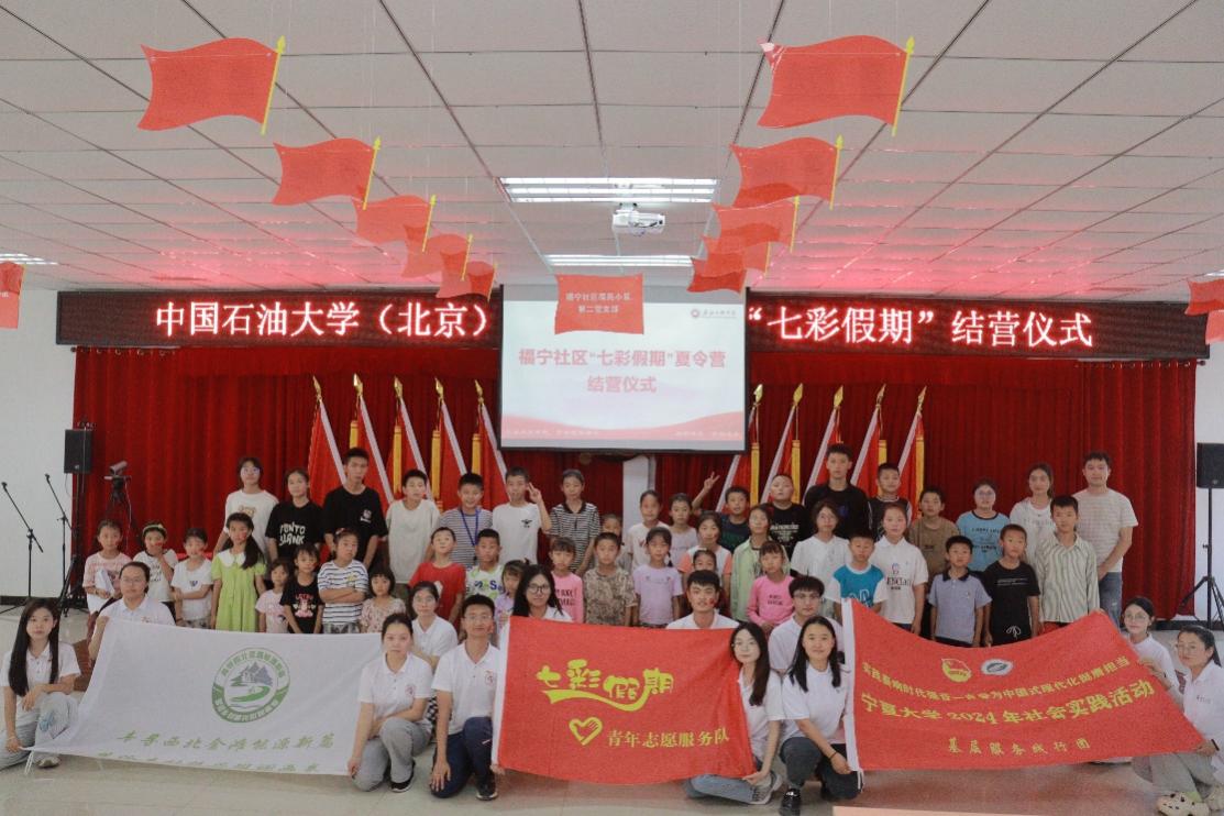 為深刻貫徹落實黨的二十大精神,彰顯青年學(xué)子責(zé)任擔(dān)當(dāng),鼓勵青年大學(xué)生在“大思政課”中“受教育、長才干、作貢獻(xiàn)”,7月13日至22日,中國石油大學(xué)(北京)石油工程學(xué)院“夢繪閩寧志,心向能源情”社會實踐團(tuán)前往寧夏回族自治區(qū)閩寧鎮(zhèn)福寧社區(qū)開展七彩假期支教活動。實踐團(tuán)精心準(zhǔn)備40余天,充分調(diào)研社會實踐優(yōu)秀案例30余件,積極向在職教師求教10余次,汲取核心理念,培訓(xùn)表達(dá)方法,圍繞“德、智、體、美、勞”五大板塊打造高質(zhì)量課程30余節(jié),與小朋友們深入交流、共同學(xué)習(xí),以童心繪童夢,點亮七彩斑斕假期。