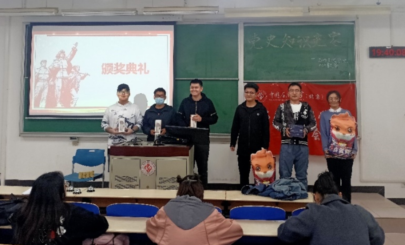 2021年是中國共產黨建黨100周年,為幫助同學們學習黨的歷史,銘記先烈事跡,2021年4月30日晚,石油工程學院于三教111教室成功舉辦“‘花式’學黨史,‘趣味’迎百年”黨史知識競賽活動。本次競賽由院學生會心權部干事高銘主持,共21名選手報名參加。通過新穎的趣味問答,回顧中國共產黨從成立到發展到壯大的光輝歷史,為建黨百年獻禮。