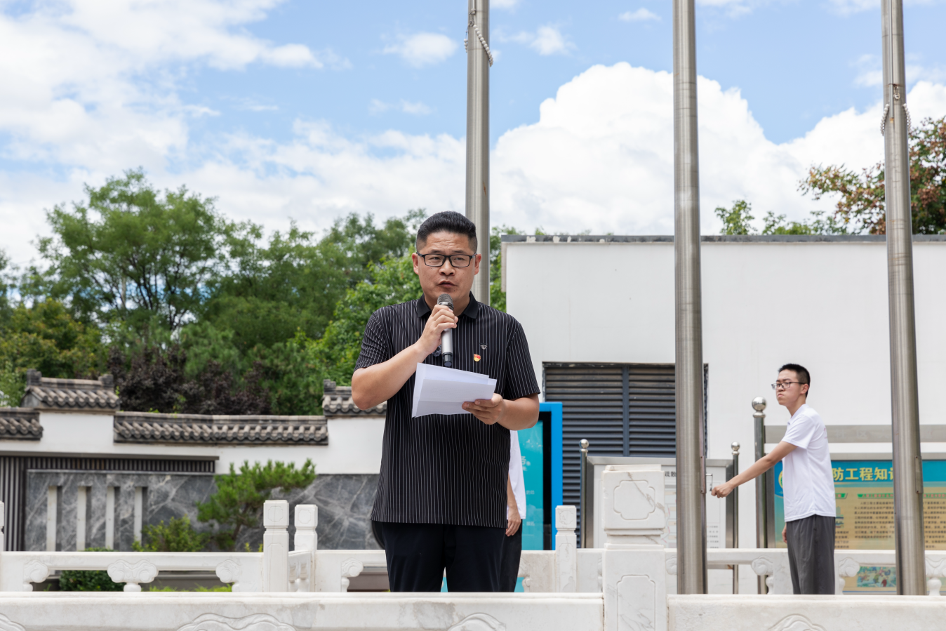 少年整裝,伴隨著激昂的國(guó)歌聲,莊嚴(yán)的升旗儀式拉開(kāi)了開(kāi)學(xué)典禮的序幕。會(huì)上,趙志鵬向全體志愿者的到來(lái)表示熱烈歡迎;張夢(mèng)圓詳細(xì)介紹了實(shí)踐團(tuán)人員及工作準(zhǔn)備情況。