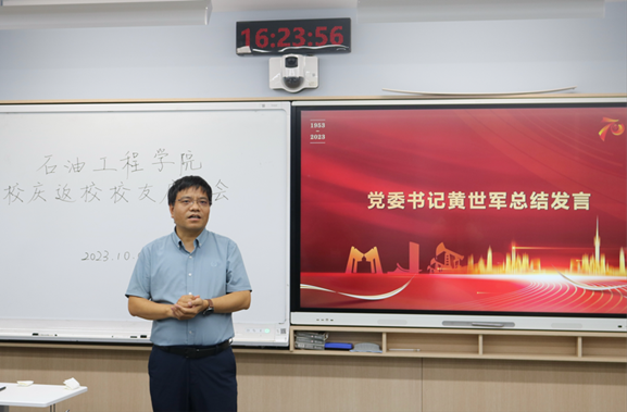 黃世軍最后總結,再次歡迎各位校友在校慶70周年之際能齊聚一堂,共憶石工故事,感謝廣大校友關心和支持學院發展,希望校友們能繼續為學院和學科的高質量發展建言獻策,為建設能源領域特色鮮明的世界一流研究型大學不斷貢獻力量。