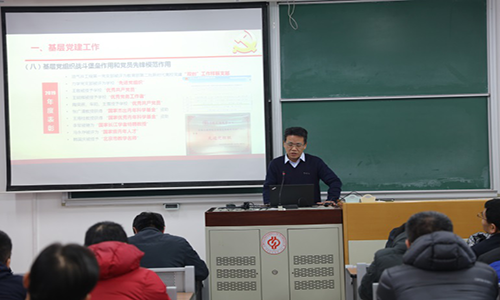 1月2日下午,石油工程學院在三教210教室召開2019年度學院領導班子述職總結會,學院黨政領導班子全體成員和全體教職工參加了會議,學院黨委書記寧正福主持會議。
