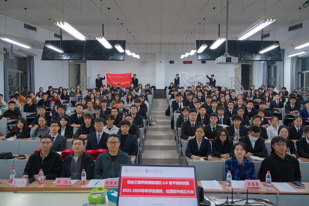 10月16日,石油工程學(xué)院舉辦領(lǐng)航團(tuán)校2.0骨干培訓(xùn)班暨2025-2026學(xué)年學(xué)生組織、社團(tuán)集中成立大會。學(xué)院黨委副書記劉東東、各學(xué)生組織及社團(tuán)指導(dǎo)老師、新一屆學(xué)生骨干及2025級班委參會。