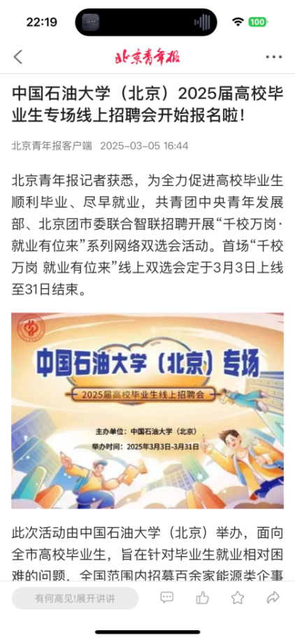 學院多措并舉扎實推進學風建設,不達目標絕不放手。持續開展高數、大物、英語等課程“周周評、月月比”活動4次,定期分析考試成績,及時調整學習策略。持續深化“雙1+1”結對制度,競聘99名優秀黨支部、高年級研究生對低年級本科生進行學業幫扶。召開班主任協同育人工作專題會,系統梳理學院育人工作成效與改進方向,為新形勢下創新人才培養模式凝聚了共識。舉辦第十五屆石油工程設計大賽校內賽,63支隊伍通過“技術創新+工程實踐+文化傳承”三維度展開激烈角逐。開展優秀學長學姐分享會、學生組織宣傳技能培訓等系列活動,全方面提升學生綜合能力。以“青春榜樣?石工力量”為主題,精心打造“人物專訪+事跡展播+成長對話”三位一體的宣傳矩陣,深度挖掘30余名在科技創新、學風建設等領域表現突出的典型學生事跡。發布“石工‘油’學風”最美筆記征集活動,60余名學生分享在校期間記錄的課程筆記,推動形成“比學趕超”的濃厚學術氛圍。聚焦畢業生急難愁盼,聯合團中央青年發展部、北京團市委、學校相關職能部門共同舉辦“千校萬崗·就業有位來-中國石油大學(北京)網絡雙選會”,共計提供就業崗位5000余個,助力畢業生高質量充分就業,活動得到北京青年報專題報道。