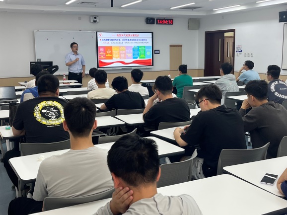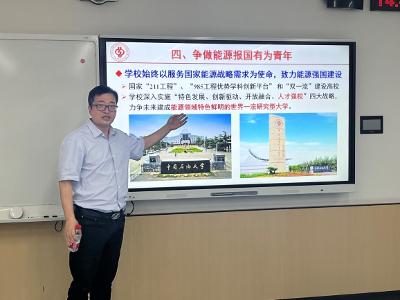 宋先知以“堅(jiān)定石油事業(yè)的理想信念,為建設(shè)能源強(qiáng)國貢獻(xiàn)力量”為題,圍繞服務(wù)國家能源戰(zhàn)略需求,從我國能源發(fā)展現(xiàn)狀、油氣能源強(qiáng)國發(fā)展路徑、油氣多能融合發(fā)展思路與爭做能源報國有為青年四個方面進(jìn)行了介紹與講解,深入闡述了如何通過發(fā)揮能源領(lǐng)域?qū)W科特色,將我國建設(shè)成綜合國力和國際影響力領(lǐng)先的社會主義現(xiàn)代化強(qiáng)國。