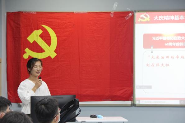 石油工程學院油藏數值模擬第二黨支部黨支部書記蔣孟晨、本石工20-6團支部書記張婧分別結合石油學子的青年擔當作主題分享。