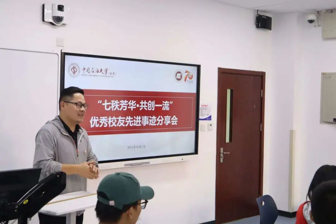 10月1日下午,石油工程學院喜迎70周年校慶系列活動—— “七秩芳華·共創(chuàng)一流”優(yōu)秀校友先進事跡分享會在第四教學樓104教室舉辦,本次活動邀請了石油工程91級校友:北京譯無止境翻譯公司總經(jīng)理曹旭東、中海油研究總院高級工程師楊莉作為主講嘉賓,石油工程學院黨委副書記劉東東、團委書記肖亞楠、門成全老師以及20余名學生參加活動。活動由肖亞楠主持。