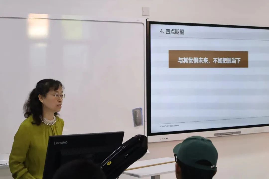 楊莉介紹了中海石油國際公司的情況,并從自身工作經(jīng)歷出發(fā),鼓勵同學們要對石油領域充滿信心,同時建議大家養(yǎng)成獨立思考、解決問題的能力,面對新環(huán)境,要學會快速適應,勇敢迎接挑戰(zhàn),把握住選擇的主動權。
