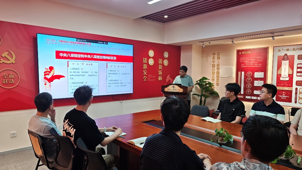 油藏數值模擬第一黨支部聯合油氣田開發教工第三黨支部于5月30日開展專題黨課學習,石油工程學院黨委書記黃世軍作題為《深入貫徹中央八項規定精神學習教育》的專題黨課,黃世軍圍繞深入貫徹中央八項規定精神學習教育的核心要義、重點領域和實踐要求等三個部分展開講解,剖析警示案例的危害,提醒師生黨員要以案為戒,嚴守“底線”、不越“紅線”。