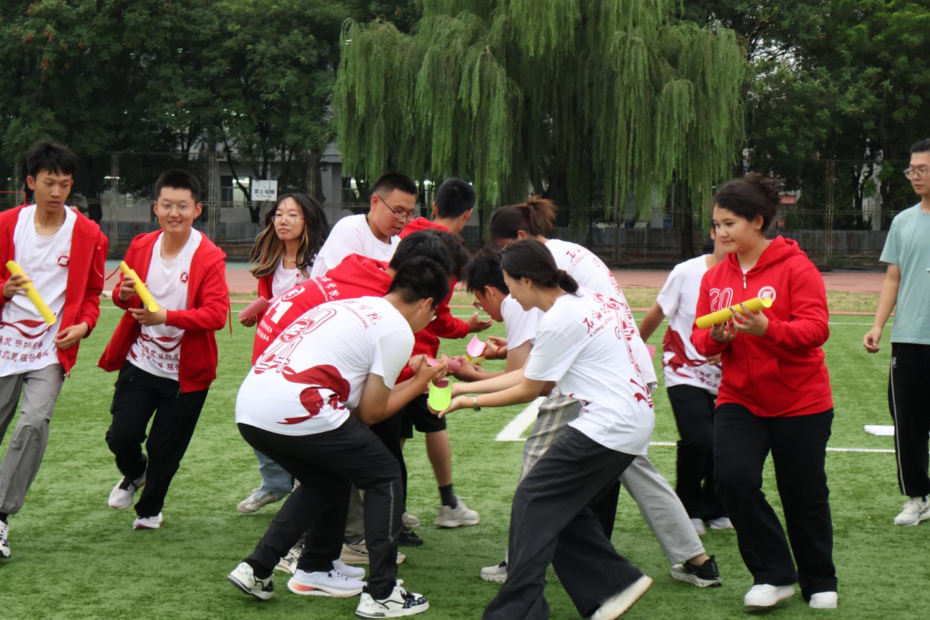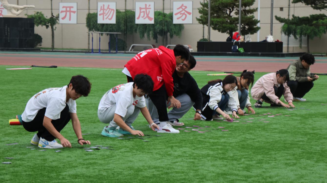 在第一個游戲校史學習“超英速”環節,各組隊伍在隊長和隊員的密切配合進行比賽,從人員部署到比拼技巧都下足功夫,比賽過程緊張刺激,大家目標明確,干勁十足。同時本項游戲還融入了校史知識學習教育,在活動道具中與學校成立以來的重大歷史事件結合起來,使學生在參與活動的過程中學習校史文化,培養愛校情懷。接下來,各隊在“不倒森林”“珠行萬里”“鼓動人心”“激情節拍”等活動項目中展開了智力與體力的大比拼,各個環節中團結協作、激烈角逐,在快節奏的體驗中感受團隊合作帶來豐碩的成果。