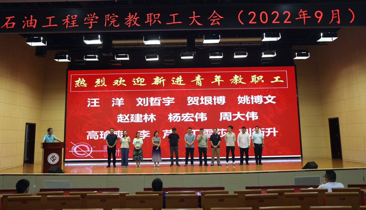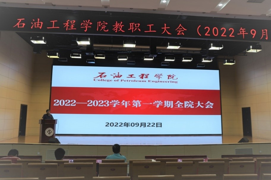 2022年9月22日下午,石油工程學院在中油大廈3層報告廳召開2022-2023學年秋季學期全院大會,學院領導班子成員及學院全體教職工參加會議,會議由學院黨委書記黃世軍主持。