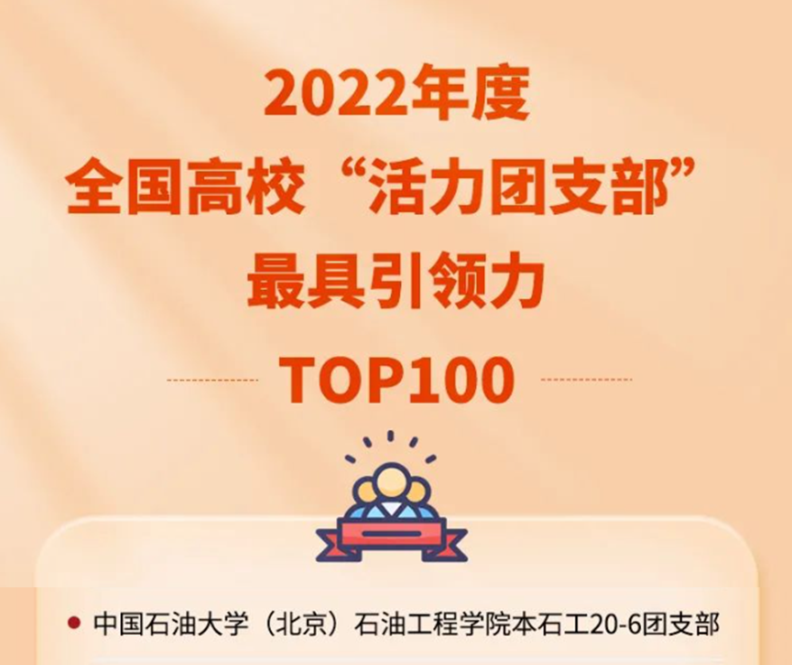 日前,中國青年報社公示了2022年度高校“活力團支部”風采展示活動遴選結果,經過校內選樹、校級展示、省級展示、全國展示等環節,中國石油大學(北京)石油工程學院本石工20-6團支部入選了《2022年度全國高?!盎盍F支部”最具引領力TOP100榜》。