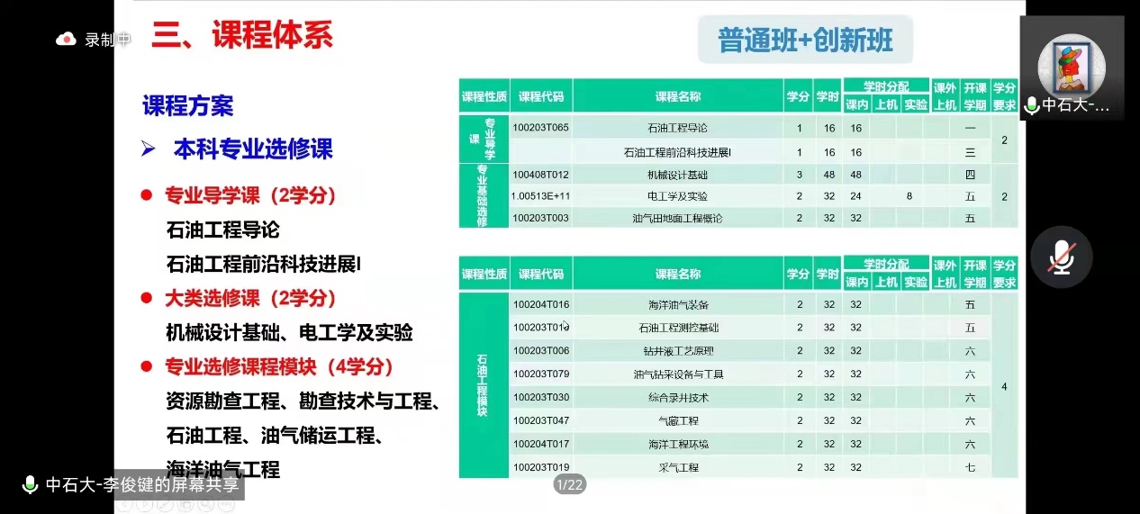 8月25上午10點(diǎn),石油工程學(xué)院面向2022級(jí)本科生線上舉行本科專業(yè)介紹大會(huì),由石油工程學(xué)院李俊鍵教授主講,2022級(jí)本科生輔導(dǎo)員李季龍主持會(huì)議,全體本科新生參加。
