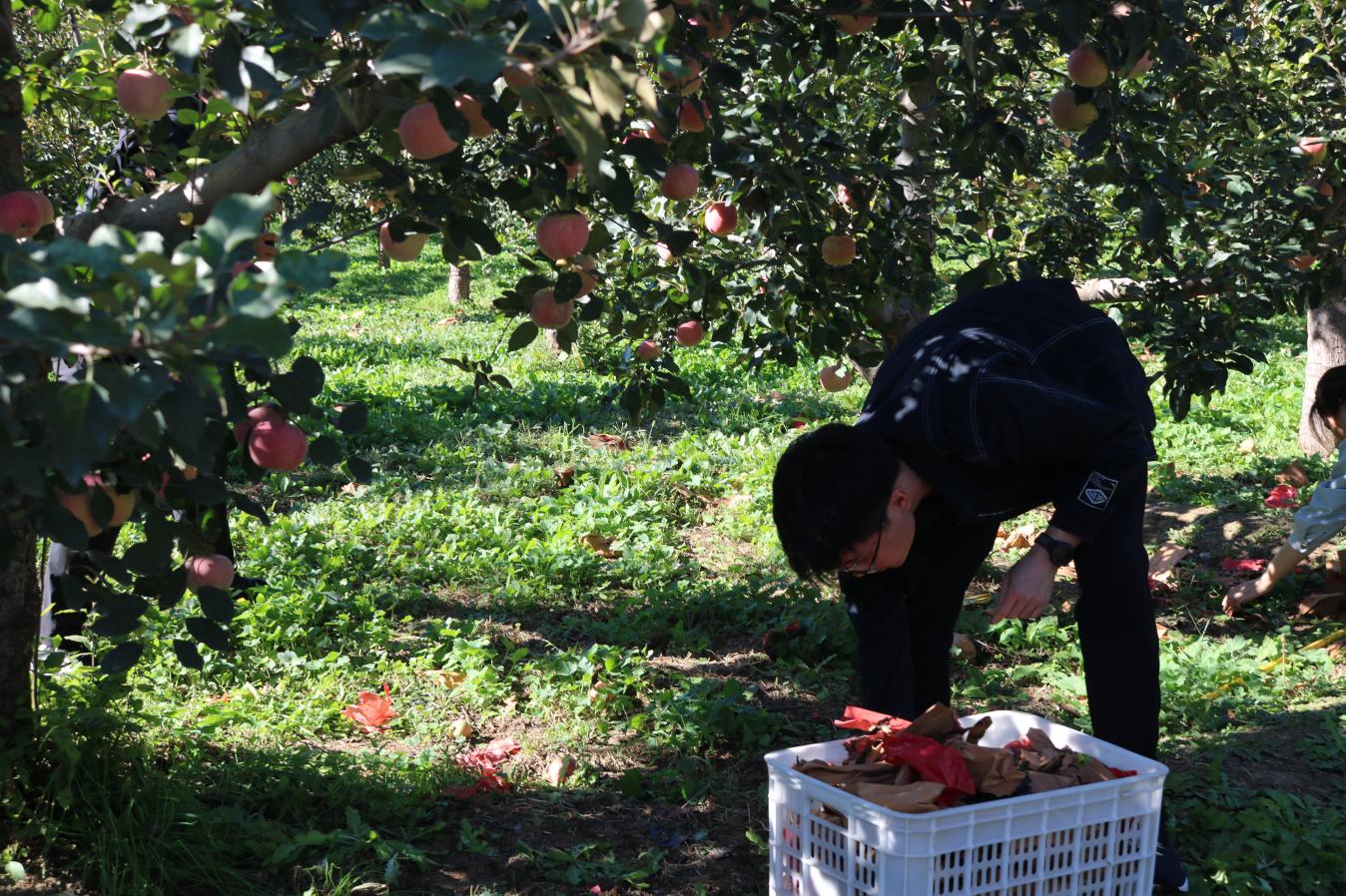 志愿者同果農(nóng)們一同在田間勞作,積極參與蘋果采摘中的蠟袋回收,幫助采摘園撿拾、搬運(yùn)并清理田間廢棄蠟袋。彎腰撿起一個(gè)個(gè)臘袋,他們仿佛在與大自然對(duì)話;每一個(gè)動(dòng)作,都是對(duì)地球母親的溫柔呵護(hù);每一個(gè)回收的臘袋,都是他們?yōu)橹Α半p碳”做出的貢獻(xiàn)。