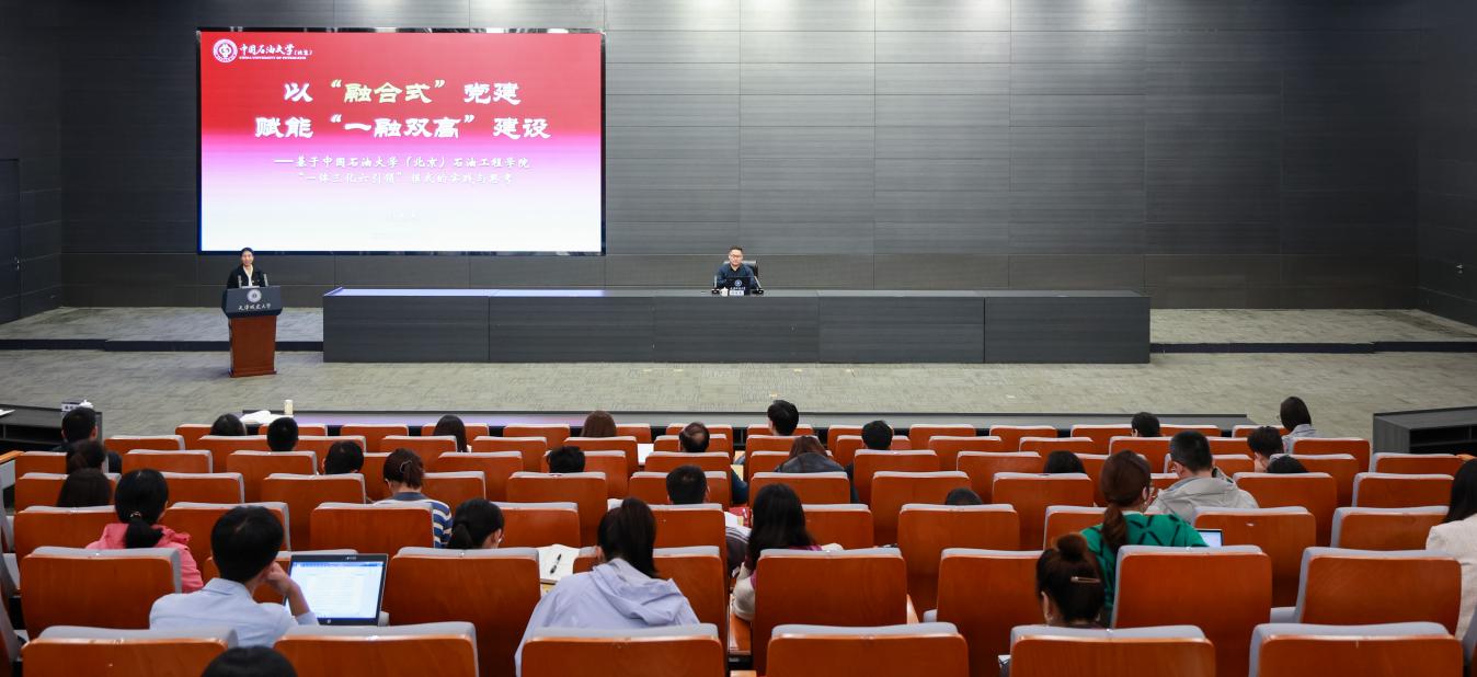 會上,劉東東作了《以“融合式”黨建賦能“一融雙高”建設》的專題報告,介紹了中國石油大學(北京)的辦學成效和教育教學改革成效;并圍繞學校中心工作開展重點分享了石油工程學院在打造全國黨建工作標桿院系,以及申報全國黨建工作樣板支部培育創建等工作中的經驗和感悟;最后結合天津城建大學黨建實際,針對性對天津城建大學院系黨建工作建設和樣板支部培育創建提供了有益思路和有效舉措。